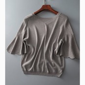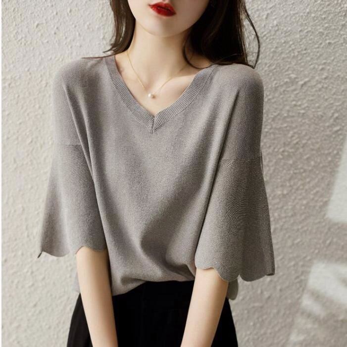 サマーニット ニット Tシャツ カットソー 半袖 Vネック フレア袖 レディース トップス 半袖ニット シンプル 涼しい 無地 冷房対策cbrhxr01