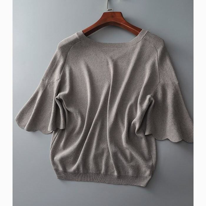 サマーニット ニット Tシャツ カットソー 半袖 Vネック フレア袖 レディース トップス 半袖ニット シンプル 涼しい 無地 冷房対策 きれいめ オフィス カジュアル 20代 30代 40代