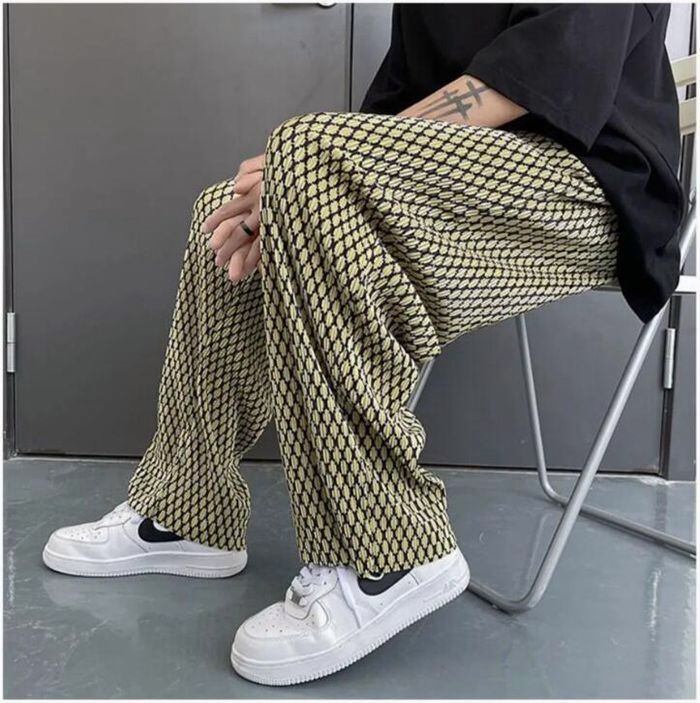 ワイドパンツ メンズ リラックスパンツ 薄手 涼しい ガラガラ 柄々 個性 イージーパンツ ボトムス 夏 秋 春 カジュアル おしゃれpusen01
