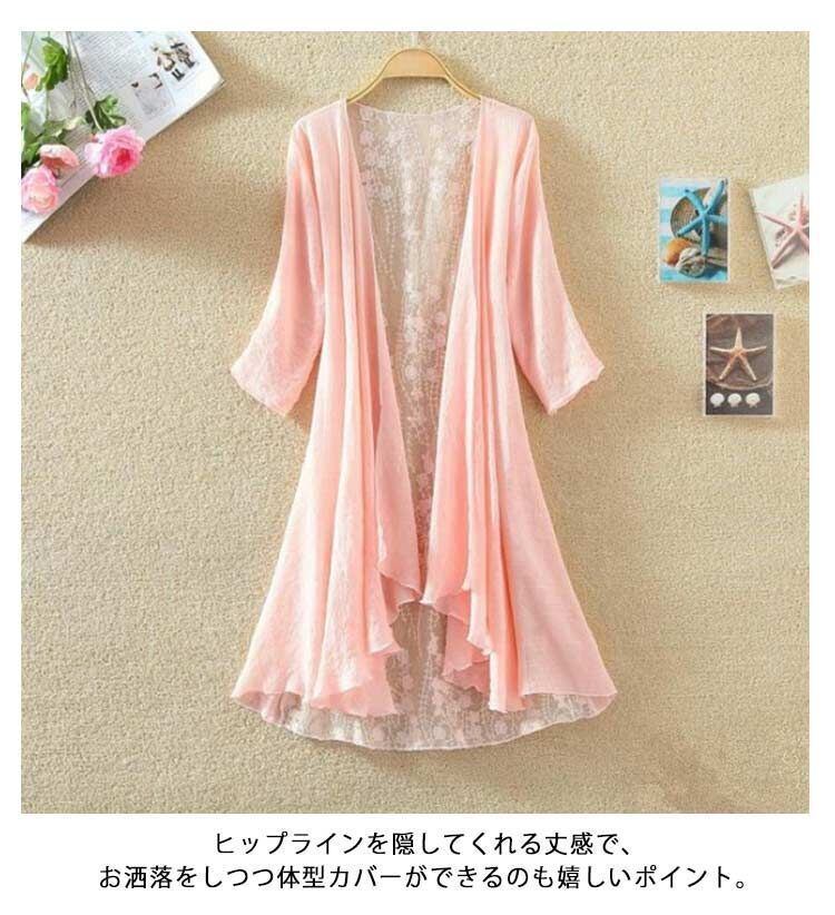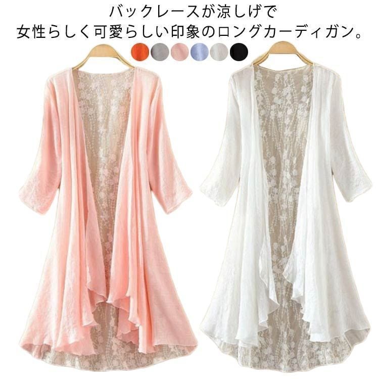 バックレース カーディガン 即購入OK 夏 七分袖カーディガン サマーカーディガン ロング丈 シースルー レース ガウン 羽織り ロングカーディガン 薄手 涼しい 春夏 羽織り トッパーカーディガン zhangban135