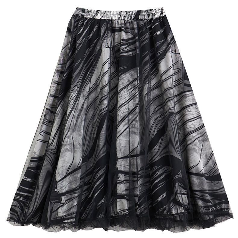 モード系 チュールスカート ふわっと愛らしく レディース ボトムス こなれ感のあるスカート 透け感 フレア ウエストゴム 繊細な生地感で大人フェミニンな雰囲気