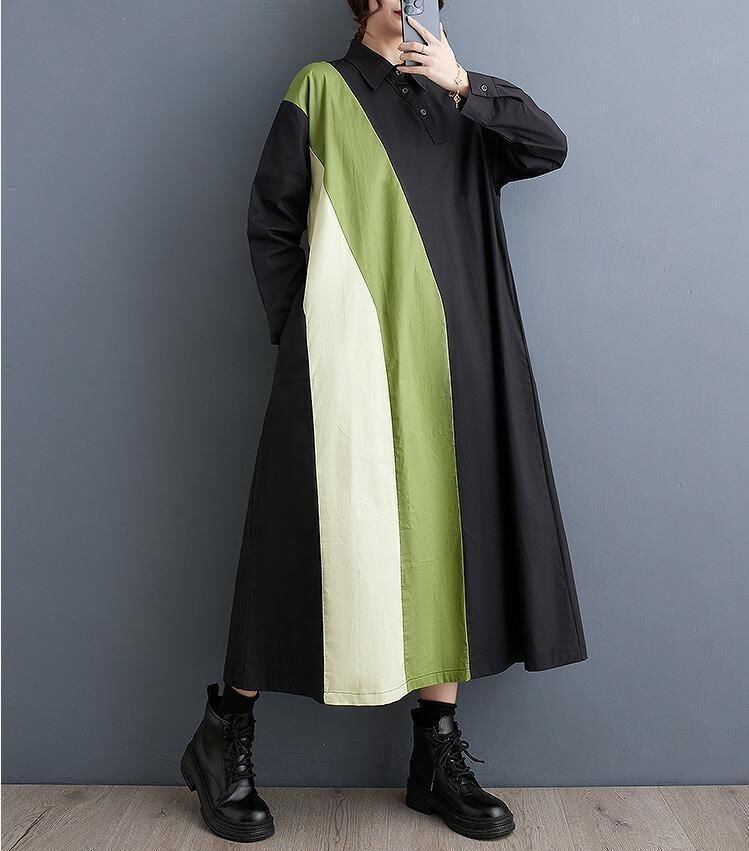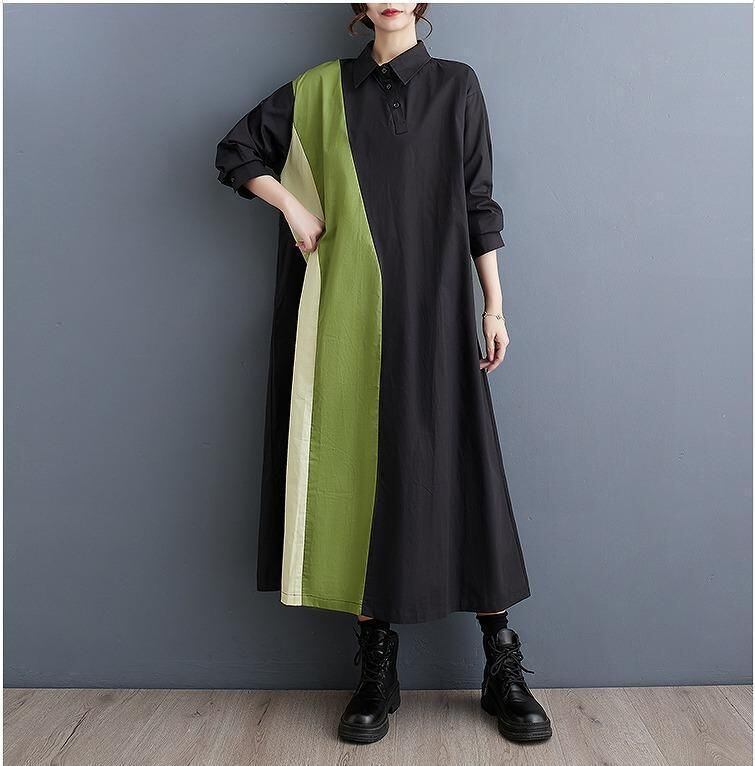 モード系 パッチワークシャツ 個性派 大きいサイズ レディース ロング ワンピース 春 秋冬 新品 長袖