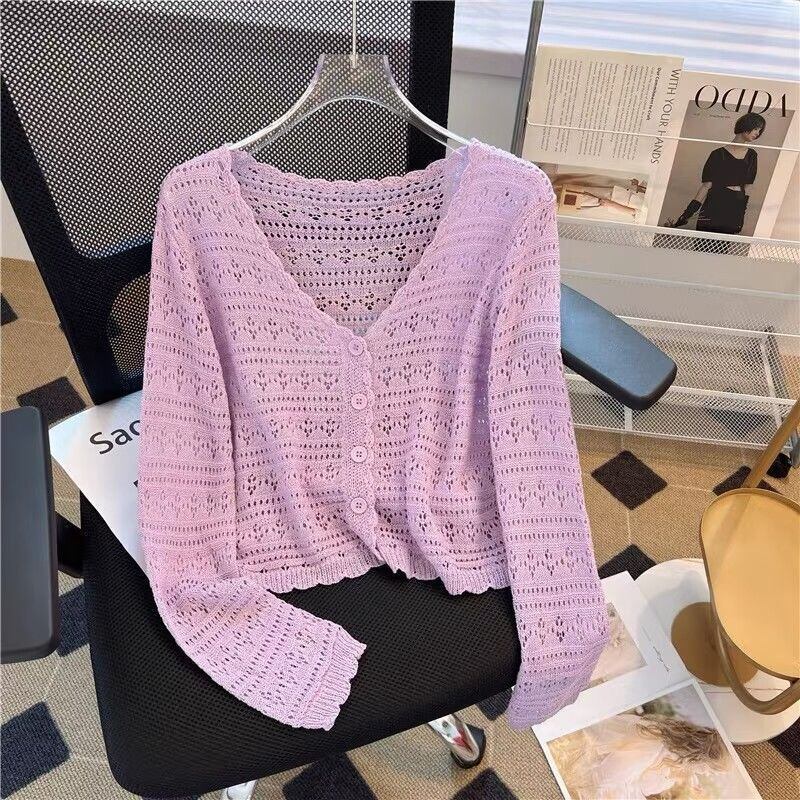 カーディガン レディース トップス 夏 羽織 透ける 透け彫り 長袖 体型カバー サマーカーディガン ゆったり カジュアル おしゃれ 冷房対策 yunshali04