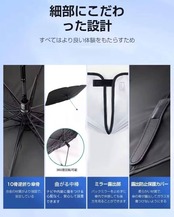 不要時は傘をしまって収納ポーチに入れて、簡単に収納できます。ルームミラー開け式なデザインと一体式のデザインを備え、