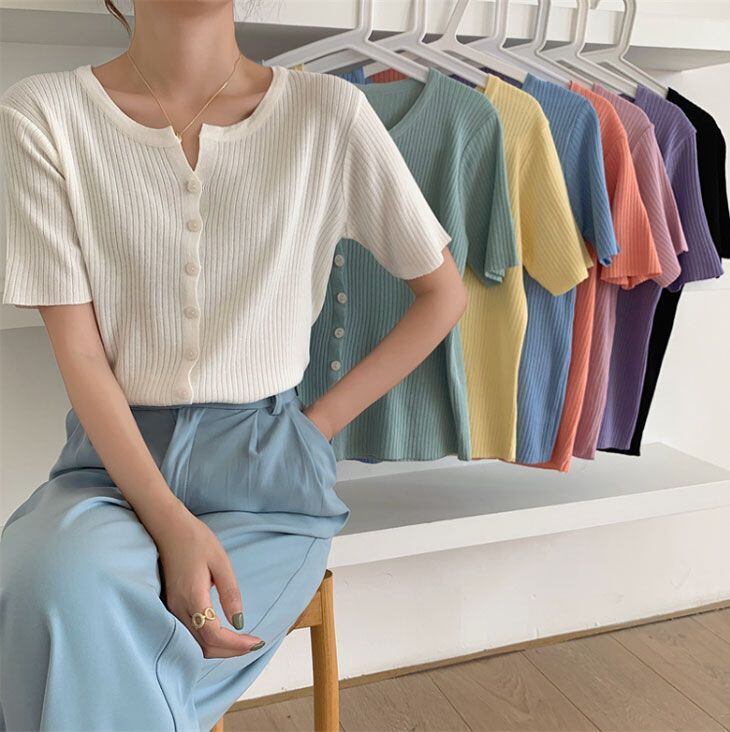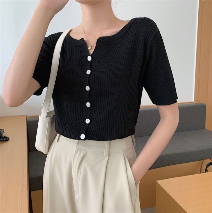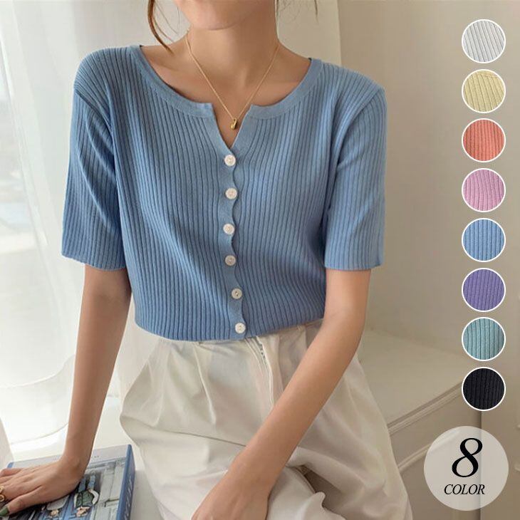 ニット カーディガン レディース トップス 羽織り 春 夏 シンプル リブニット RIB サマーニット アウター カジュアル 半袖 ニットカーディガン 可愛い 韓国ファッション