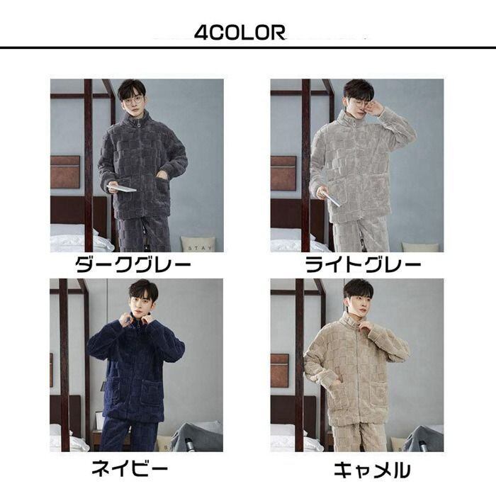パジャマ メンズ ルームウェア 冬用 暖かい 防寒対策 ナイトウェア 上下セット もこもこ 厚手 ふわふわ 防寒 寝間着 部屋着 セットアップ 寝巻き shengcheng01