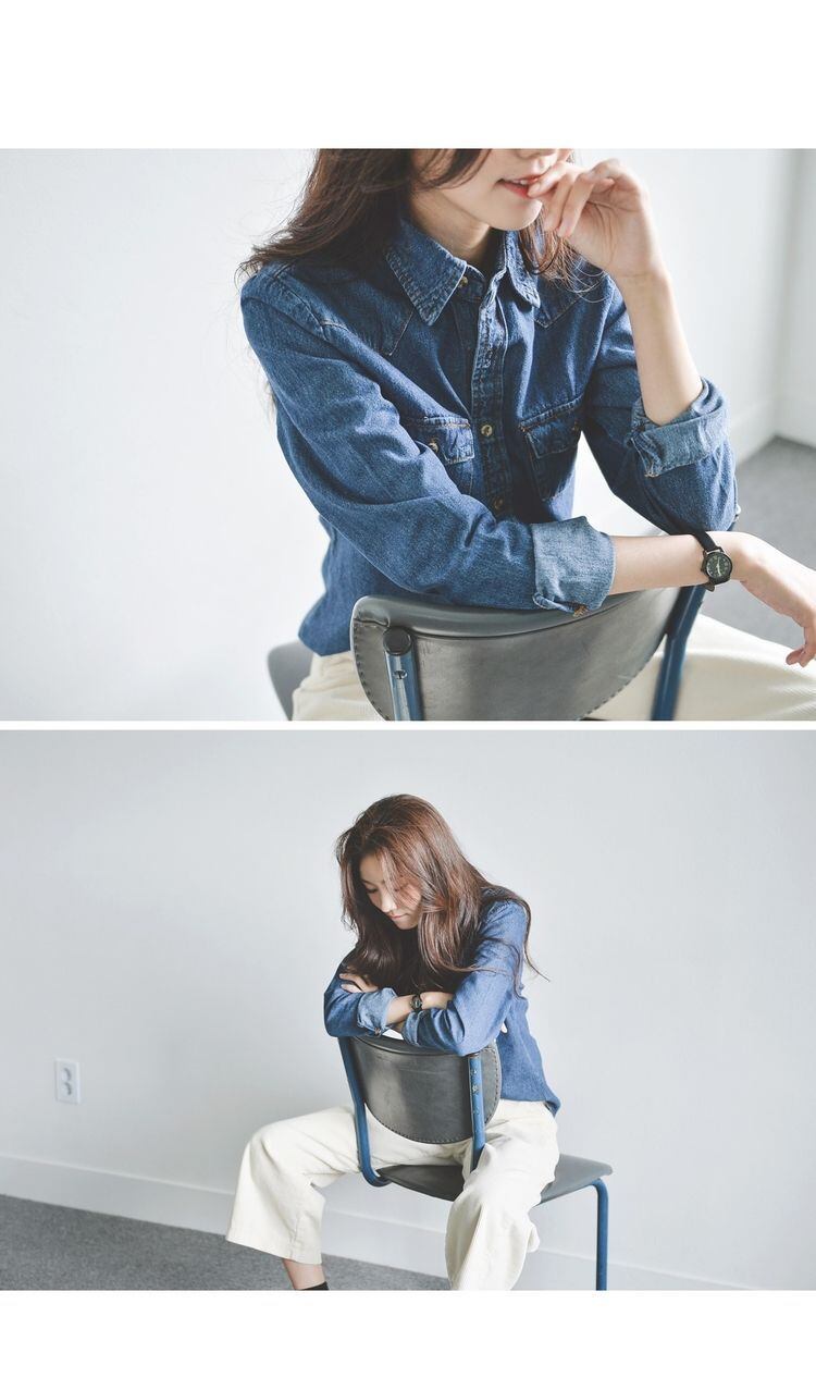 デニムシャツ レディース ウエスタンシャツ 長袖 ブラウス ダンガリーシャツ ウォッシュ ウエスタンデニム サックス ブルー シャツ chengsheng01