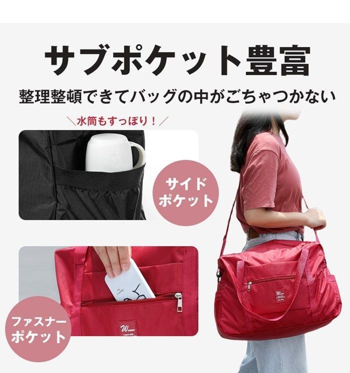 ボストンバッグ 手持ち 肩掛け キャリーオン 3WAY 大容量 撥水 メンズ レディース 軽い 旅行 キャリー 軽量 軽い キャリーオンバック 斜め掛け 肩掛け ショルダー 2泊 3泊 修学旅行 かわいい おしゃれ 32L 2way 3way バッグ 【品 番】nolan01 【カラー】ブラック、ネイビー、ライトグレー、ワイン 【サイズ】L(約)幅46cm×高さ35cm×奥行20cm、ショルダーベルト長さ74cm(調節可能) 【素 材】撥水加工オックスフォードクロス 【POINT】 1、軽くて大容量 本体はLサイズでもたった360g 折りたためばコンパクトになるのでバッグインバッグとしてもおススメです 2、3WAYで便利 ショルダーベルトは着脱可能です 用途や荷物量に合わせて自由自在 3、生地もしっかり 撥水加工 耐久性が良く急な雨でも安心の撥水生地 4、便利なサブポケット 両サイドのポケットはスマーフォンや水筒などの収納に便利 すぐ取り出せます 5、キャリーオンでも安定 スーツケースのハンドルに通して キャリーオンケースとして使えます 【ご注意】 ※センターのタグは生産時期によってデザインと異なる場合がありますので予めご了承くださいませ。