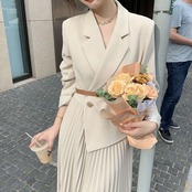 入学式 ママスーツ 新生活 ワンピース セレモニースーツ 卒業式 スーツ おしゃれ レディース フォーマルスーツ 母 七五三 卒園式 入園式 Vネック プリーツ フェイクレイヤード エレガント 長袖 春 秋 着痩せ hanrui01