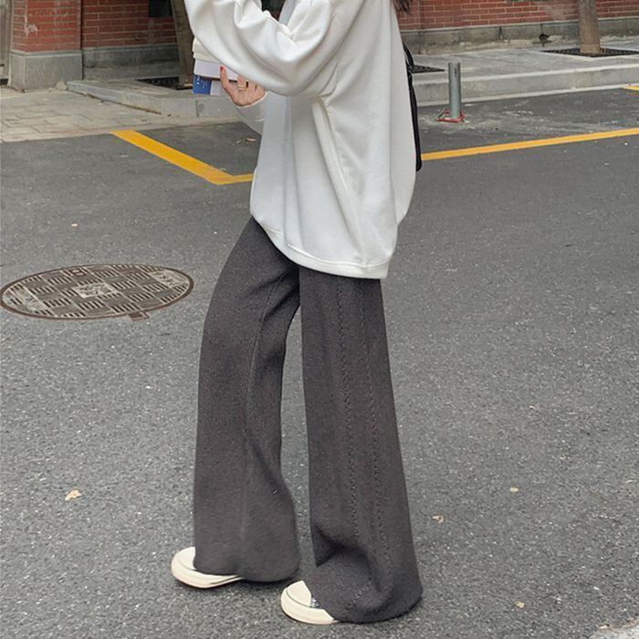 パンツ リブニット ワイドパンツ 全6色 冬 レディース ボトムス イージーパンツ ニットパンツ 大人 カジュアル ロング丈 暖かい 防寒対策 あったか シンプル 綺麗 無地 楽ちん ghx0101