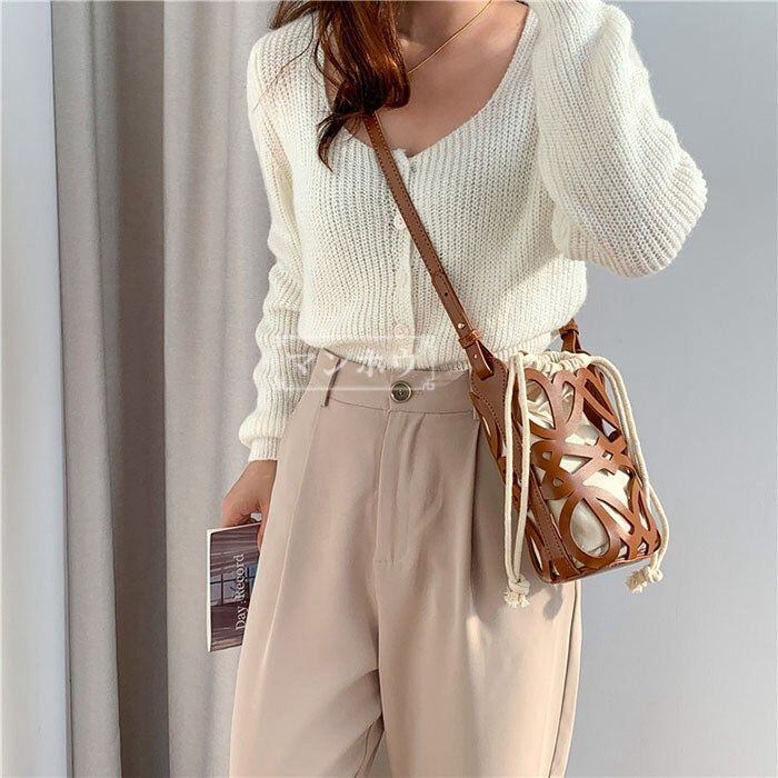 ショルダーバッグ レディース かごバッグ ショルダー バッグ 斜め掛けバッグ レザーかごバッグ 巾着バッグ カットワーク 合皮 スマホポーチ ショルダー バケツバッグ おしゃれ かわいい シンプル 斜めがけ ミニポシェット xiaomil01