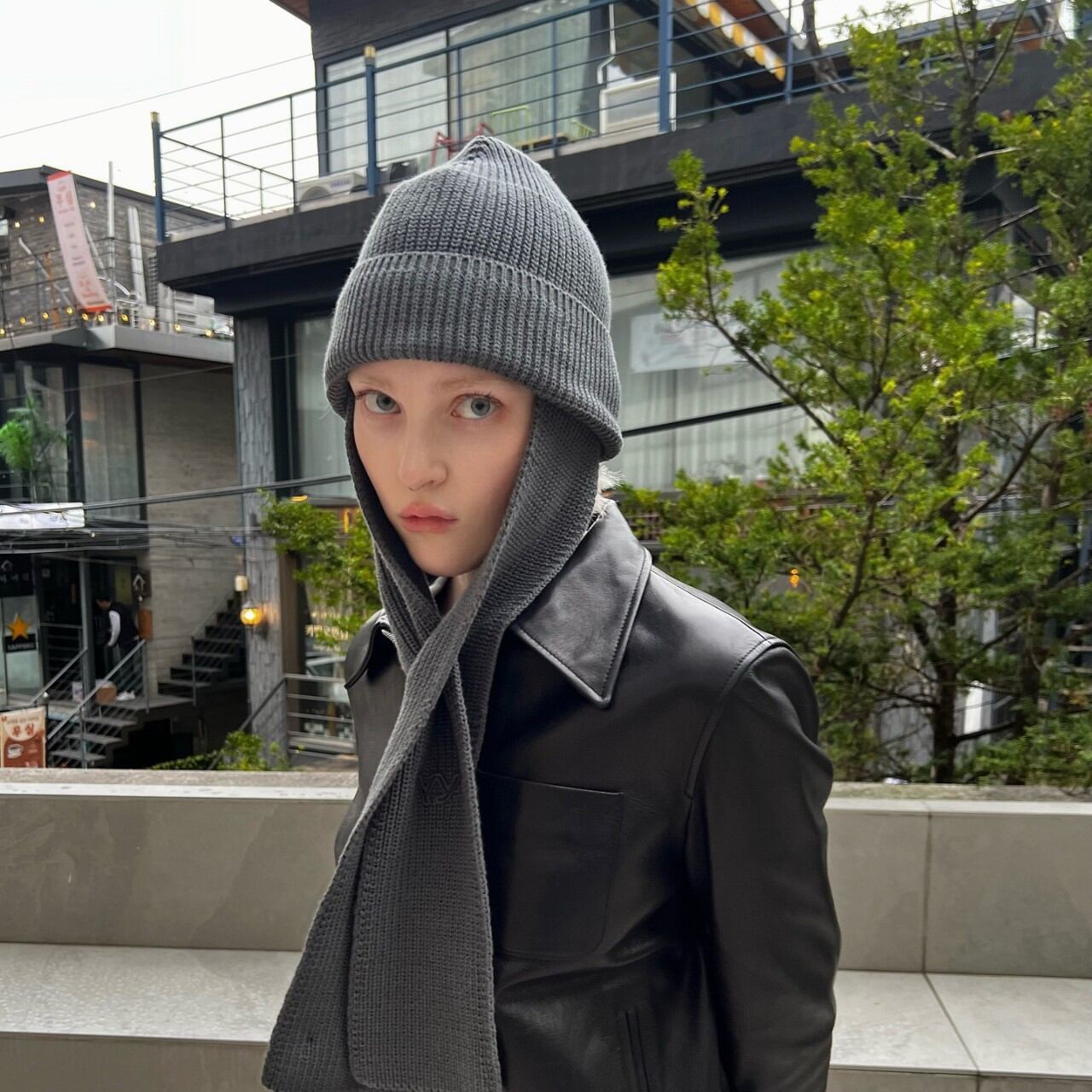 新作 韓国 OPEN YY オープンワイワイ ファッション 帽子 マフラー ビーニー ニットキャップ SCARF BEANIE CHARCOAL