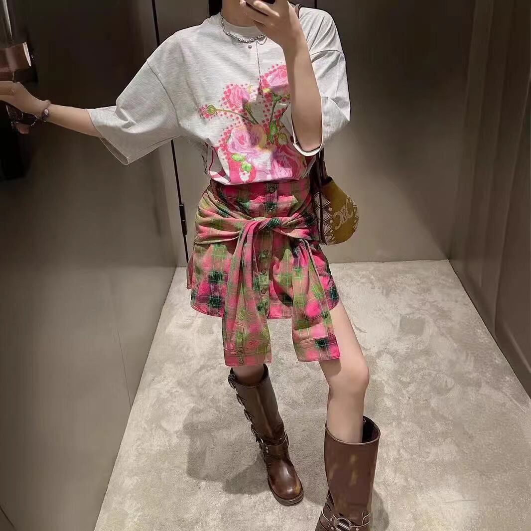 韓国 OPEN YY_TheOpen Product オープンワイワイ_ザオープンプロダクト レディースファッション スカート 2WAY FADED CHECK SHIRT SKIRT