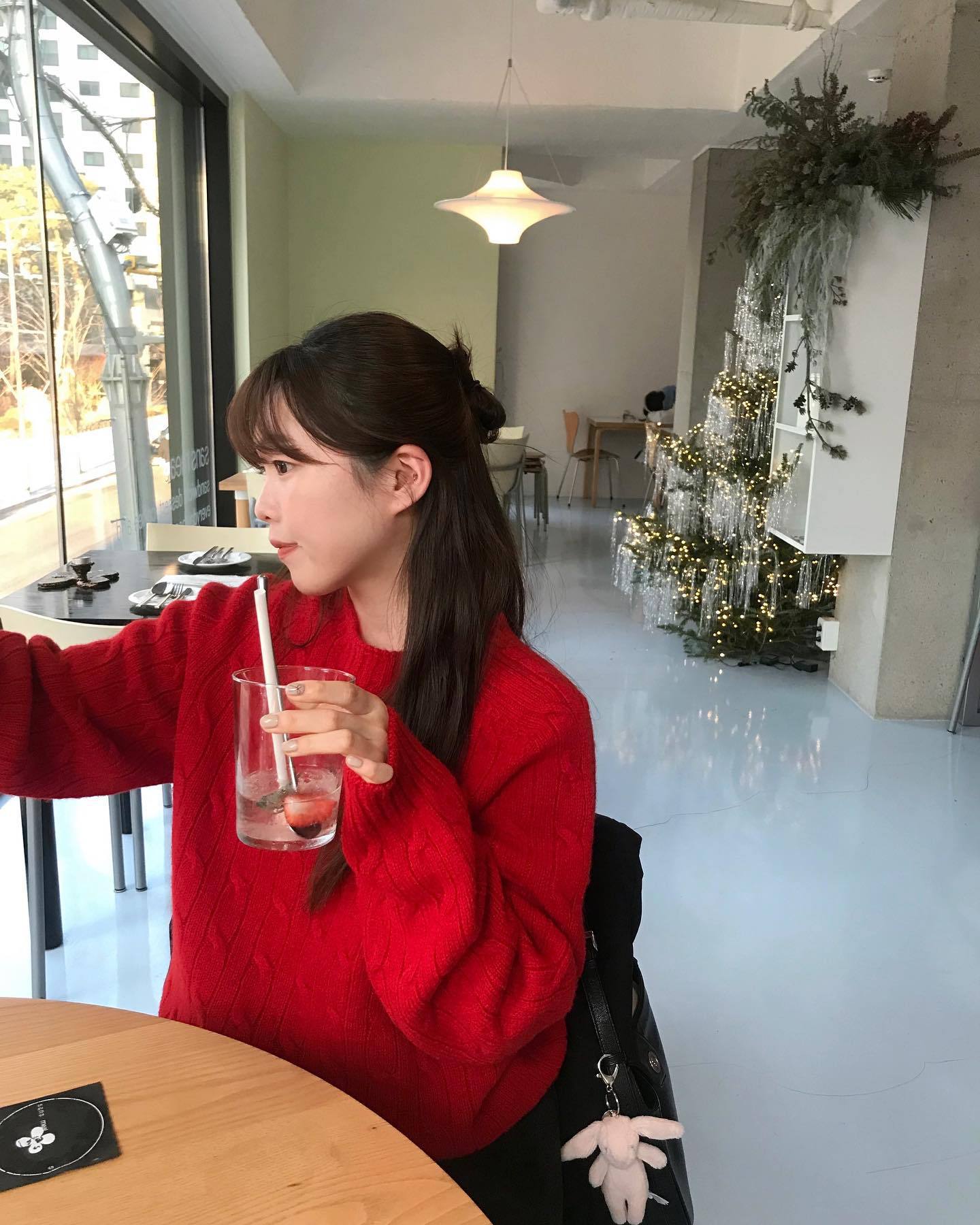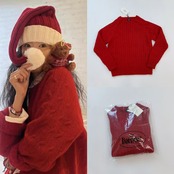 韓国 ファッション The Barnnet ザ バーネット セーター ニットトップス Boucle Pointelle Knit Sweater レッド