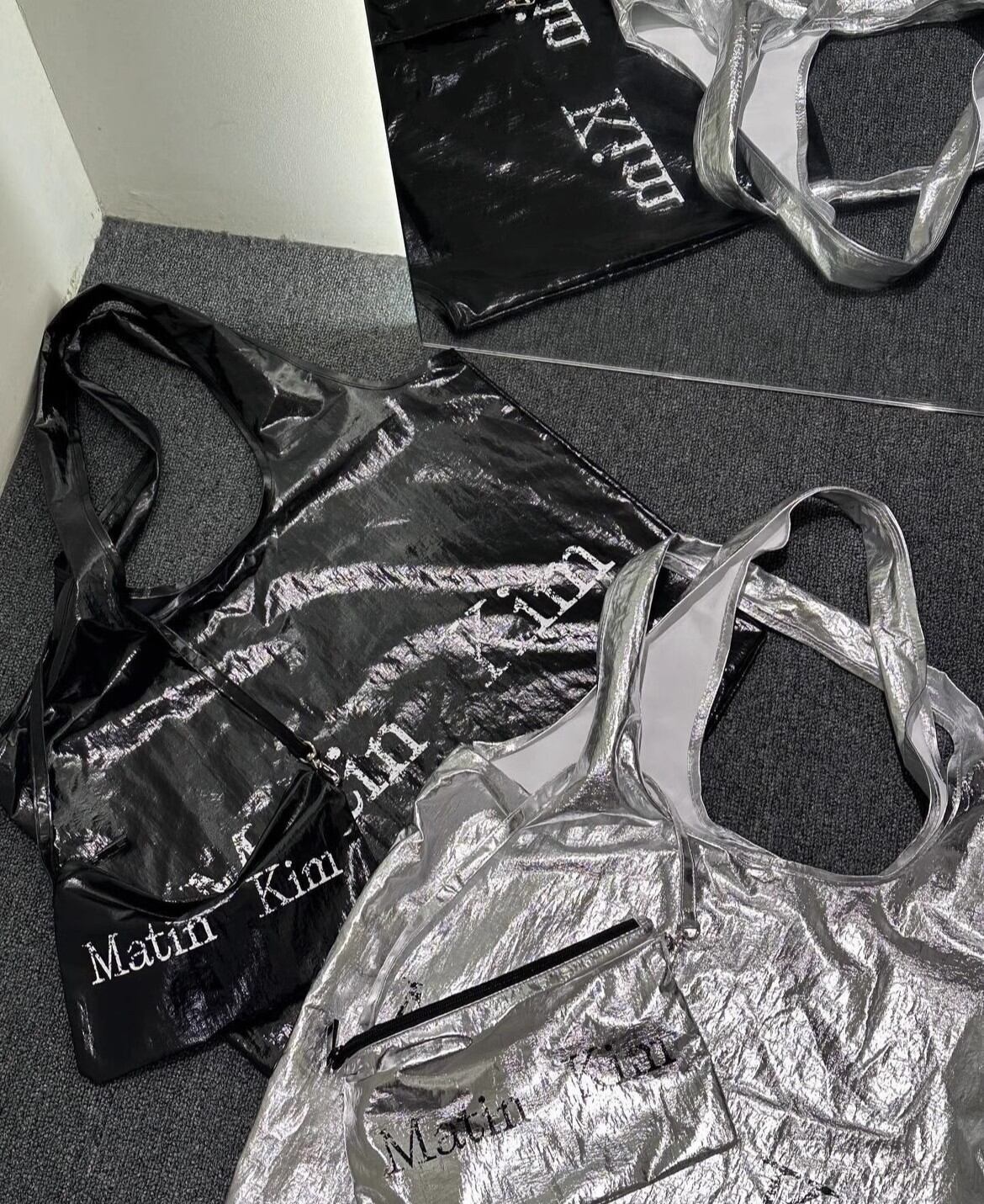 人気 韓国 Matin Kim マーティンキム ファッション エコバッグ ショルダーバッグ MATIN CRACKED LOGO GLOSSY ECO BAG BLACK