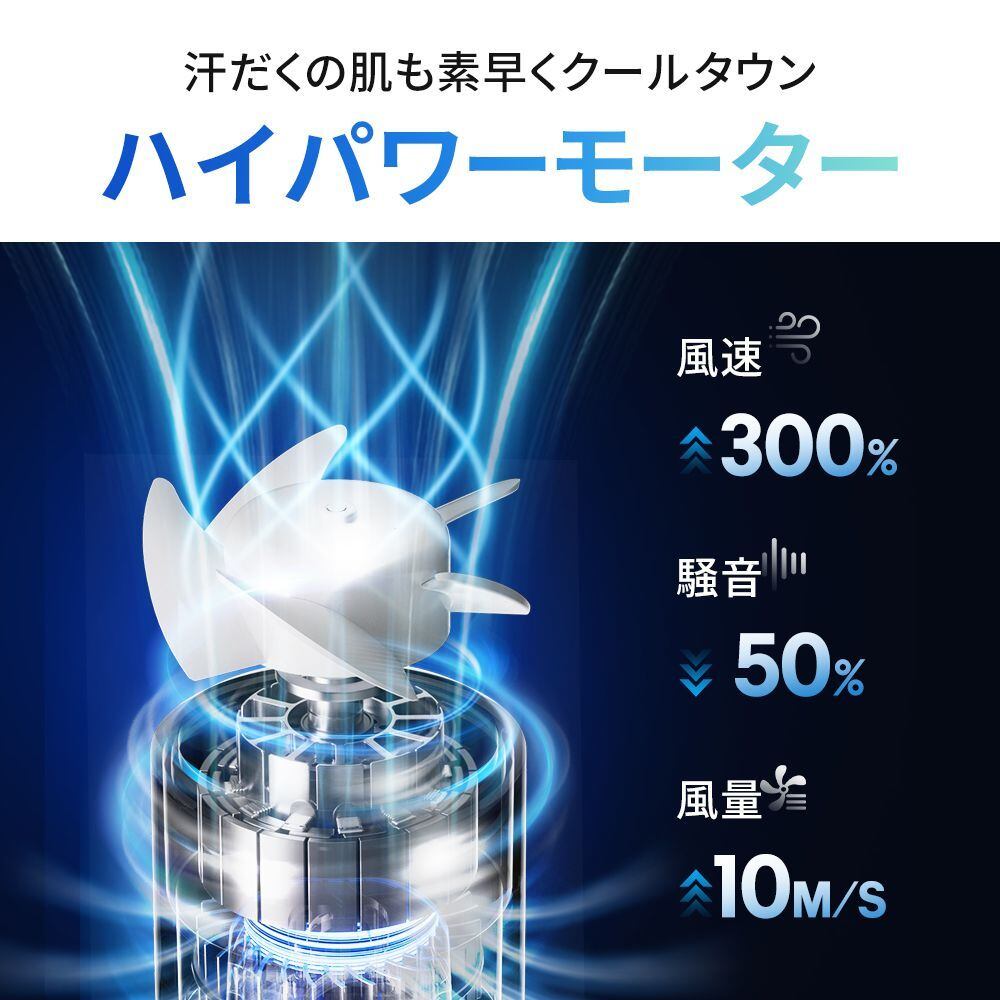 あらゆるシーンで、あなたの「涼しい!」を自由自在に実現する、まさに変幻自在のハンディファンです。手持ちでの使用はもちろん、デスクに置いて涼める卓上扇風機として。首に掛ければハンズフリーで涼しく、さらに様々な場所に吊り下げて使うことも可能です! そして、一度の充電で、なんと最長20時間*もの連続使用が可能!通勤・通学、オフィス、アウトドア、イベントなど、一日中バッテリー残量を気にせず、快適にお過ごしいただけます。