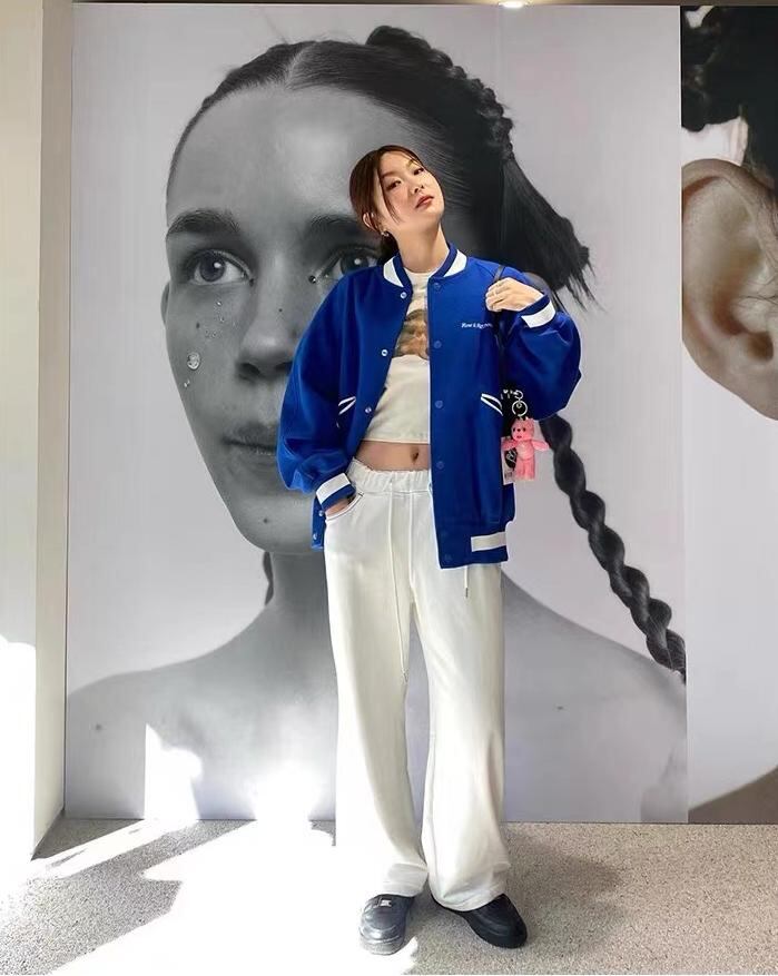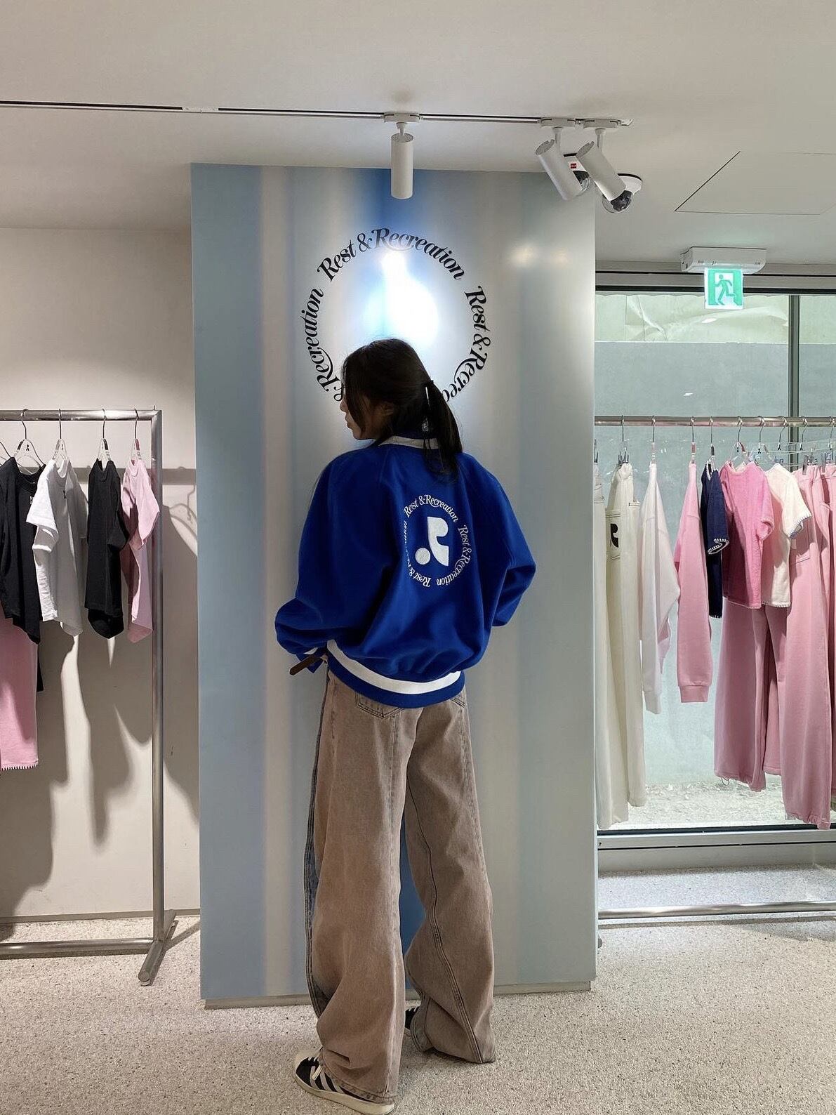 韓国 Rest & Recreation レストアンドレクリエーション レディースファッション アウター ジャケット RR BOUCLE EMBROIDERY VARSITY JACKET BLUE