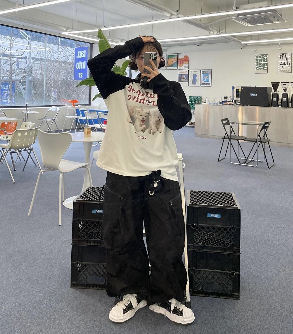 WaiKei ワイケイ 韓国ファッション トップス Tシャツ 長袖 長袖Tシャツ 犬 マルチーズ Maltese archive raglan long sleeve tshirts アイボリー