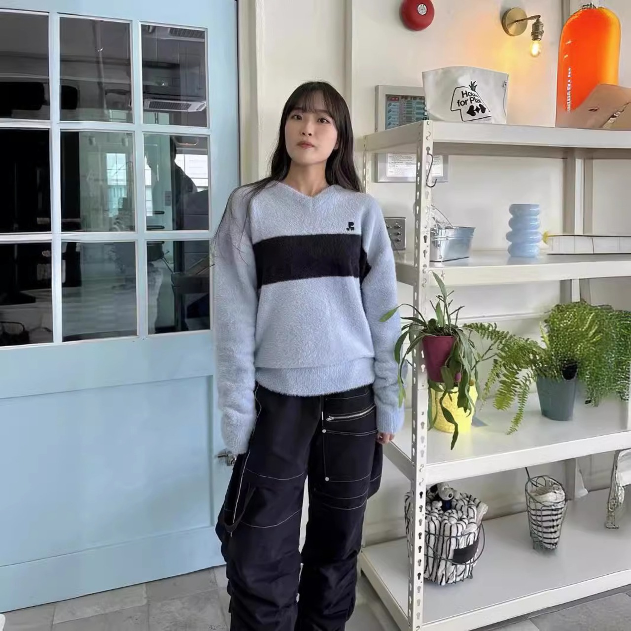 Rest & Recreation レストアンドレクリエーション 韓国 トップス ニット セーター 男女兼用 RR V-NECK HAIRY KNIT TOP SKY BLUE