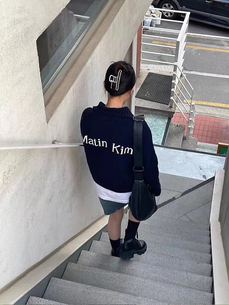 韓国 Matin Kim マーティンキム セーター ファッション 長袖 ジップアップニット SPELL POINT KNIT ZIP UP ブラック