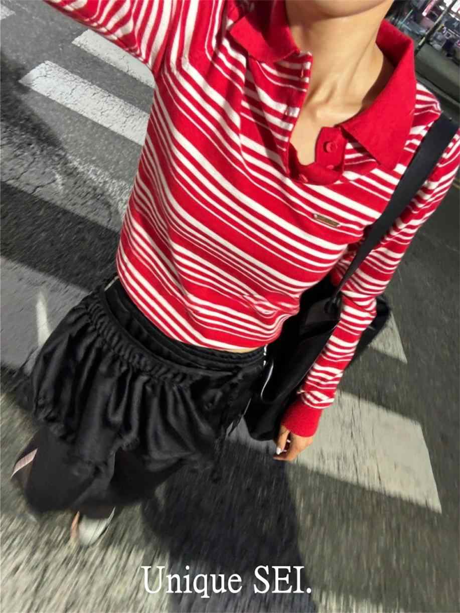 ポロシャツ Unique SEI ユニークセイ 韓国風 透け感のある 長袖 シャツ レディース 春秋 ネイビー レッド グリーン ブラウン