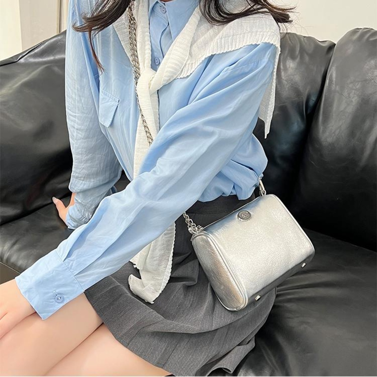 新品 韓国 ミニミュート minitmute レディース ファッション バッグ チェーン ショルダーバッグ BRETT MINI BAG シルバー