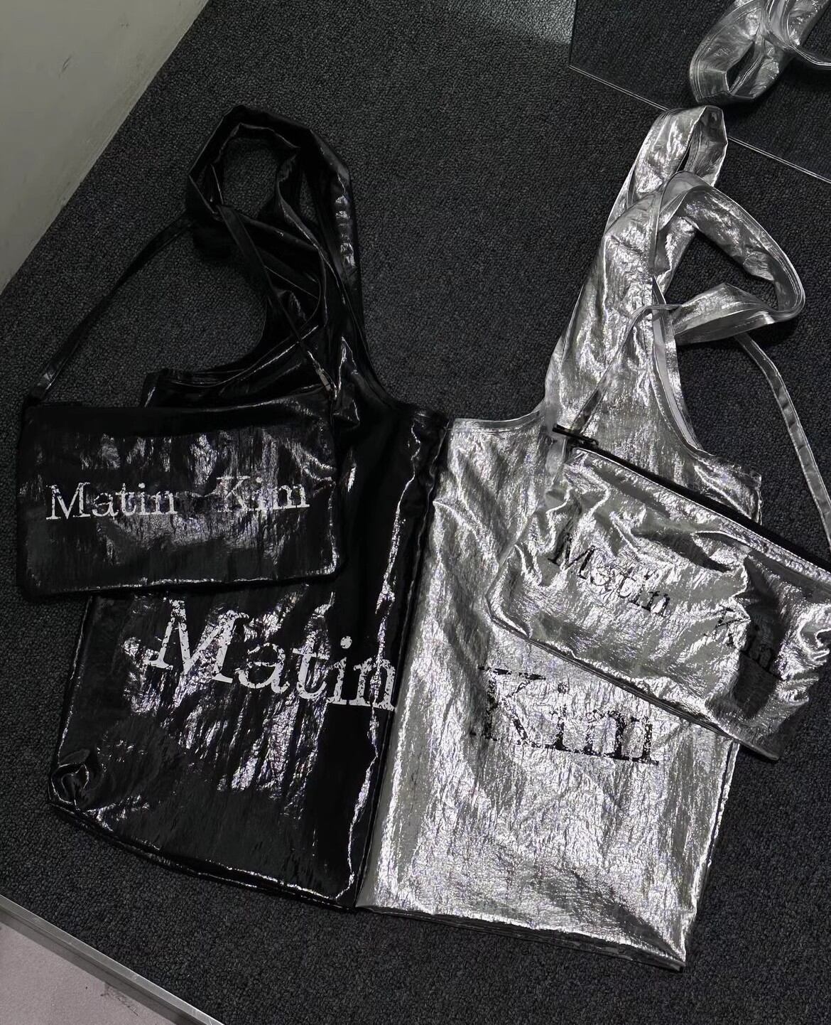 人気 韓国 Matin Kim マーティンキム ファッション エコバッグ ショルダーバッグ MATIN CRACKED LOGO GLOSSY ECO BAG BLACK