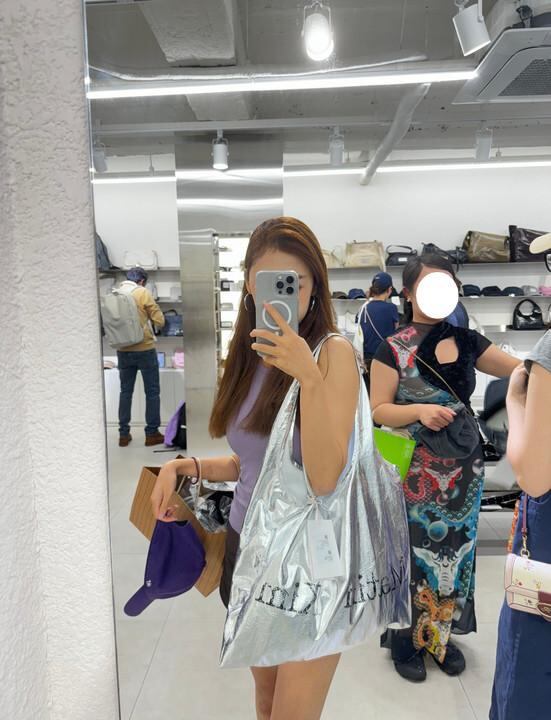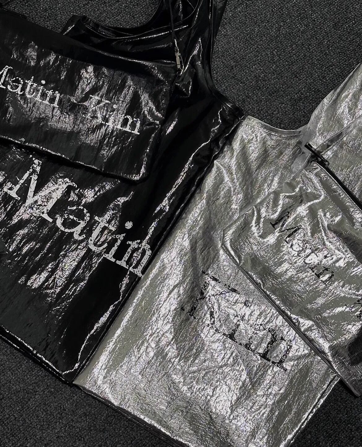 韓国 Matin Kim マーティンキム エコバッグ ショルダーバッグ レディースファッション MATIN CRACKED LOGO GLOSSY ECO BAG SILVER