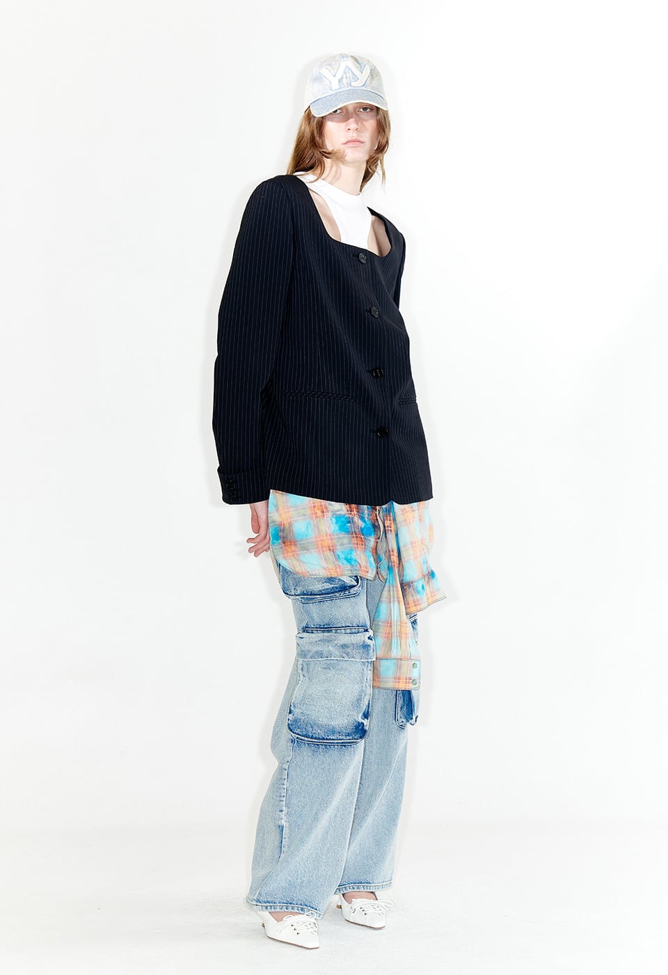 韓国 OPEN YY オープンワイワイ レディース ファッション ジャケット アウター SQUARE NECK JACKET ブラック