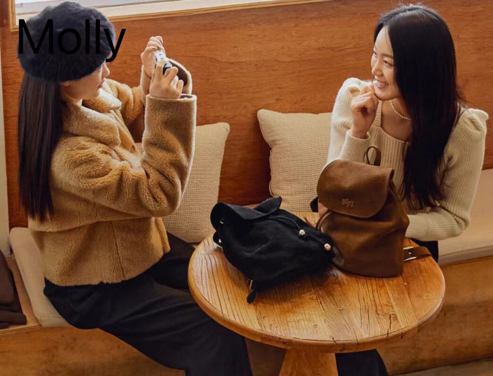 韓国 SOFT SEOUL レディース ファッション ミニリュック バックパック Suede Gold Ball Backpack ブラック