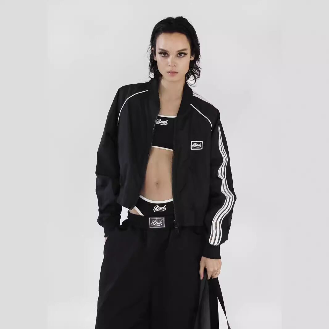 韓国ファッション バッドブラッド パンツ ビリ ストライプカーゴパンツ ダンスパンツ 黒パンツ Billy SS Track Pants ブラック