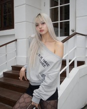 ユヒ トップス スウェット 韓国 ファッション スウェットシャツ Red Velvet ジョイ 着用 YOUHEE OFF SHOULDER SWEATSHIRTS グレー