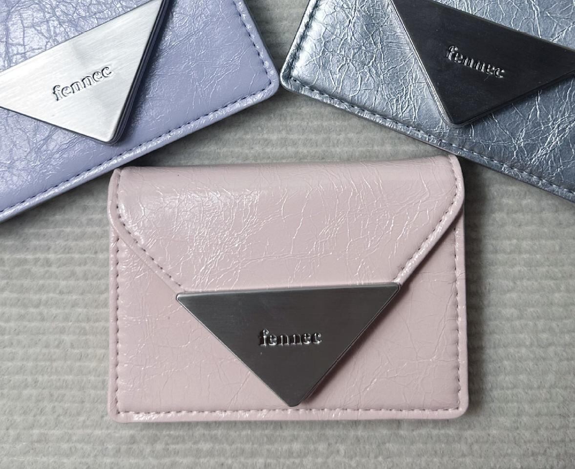 韓国 Fennec フェネック 三つ折り財布 財布 小物 カードケース 名刺入れ ファッション 折りたたみ財布 CRINKLE TRIANGLE TRIPLE WALLET ピンク