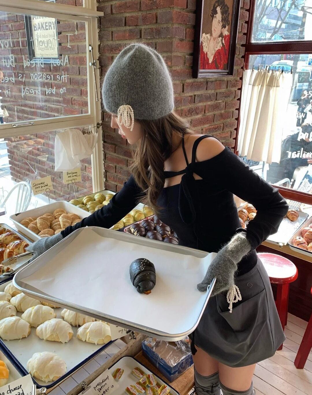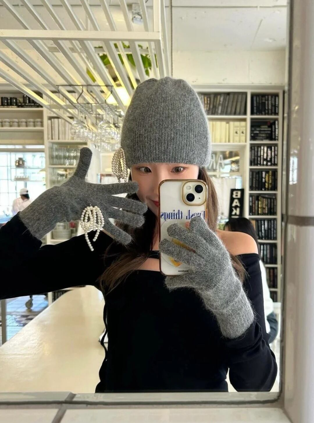 韓国 rolarola ロラロラ ファッション リボン 手袋 小物 RIBBON ANGORA GLOVES GRAY