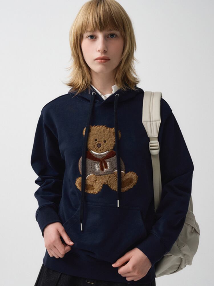 新作 韓国 Marithe + Francois Girbaud マリテフランソワジルボー フーディー トップス ベア フーディー 男女兼用 BOUCLE DOODLE BEAR HOODIE navy
