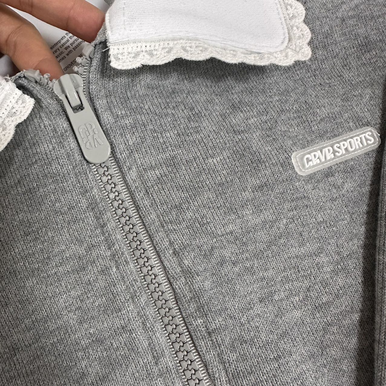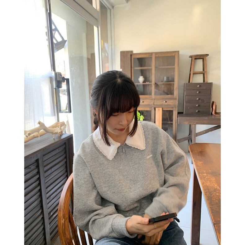 大人気 韓国ファッション グローブ GROVE レース襟 スウェットシャツ トップス SPORTS LACE COLLAR SWEAT SHIRTS グレー