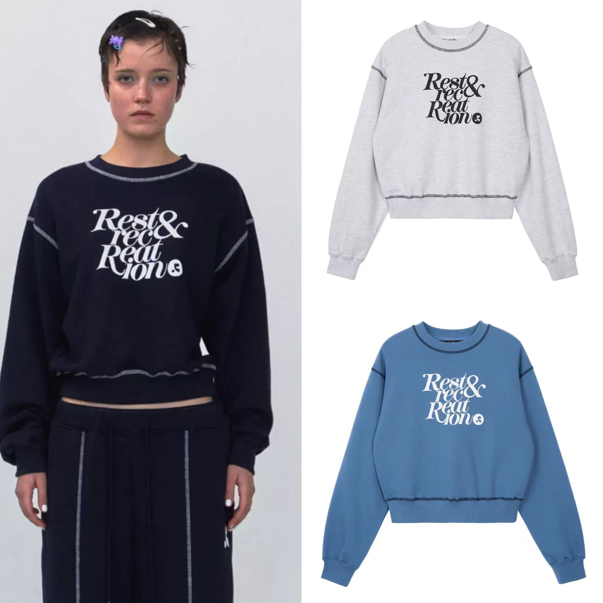 新品 韓国ファッション レストアンドレクリエーション ロゴ 長袖 トップス スウェット トレーナー プルオーバー クルーネック おしゃれ レディース メンズ 男女兼用 カジュアル ブルー