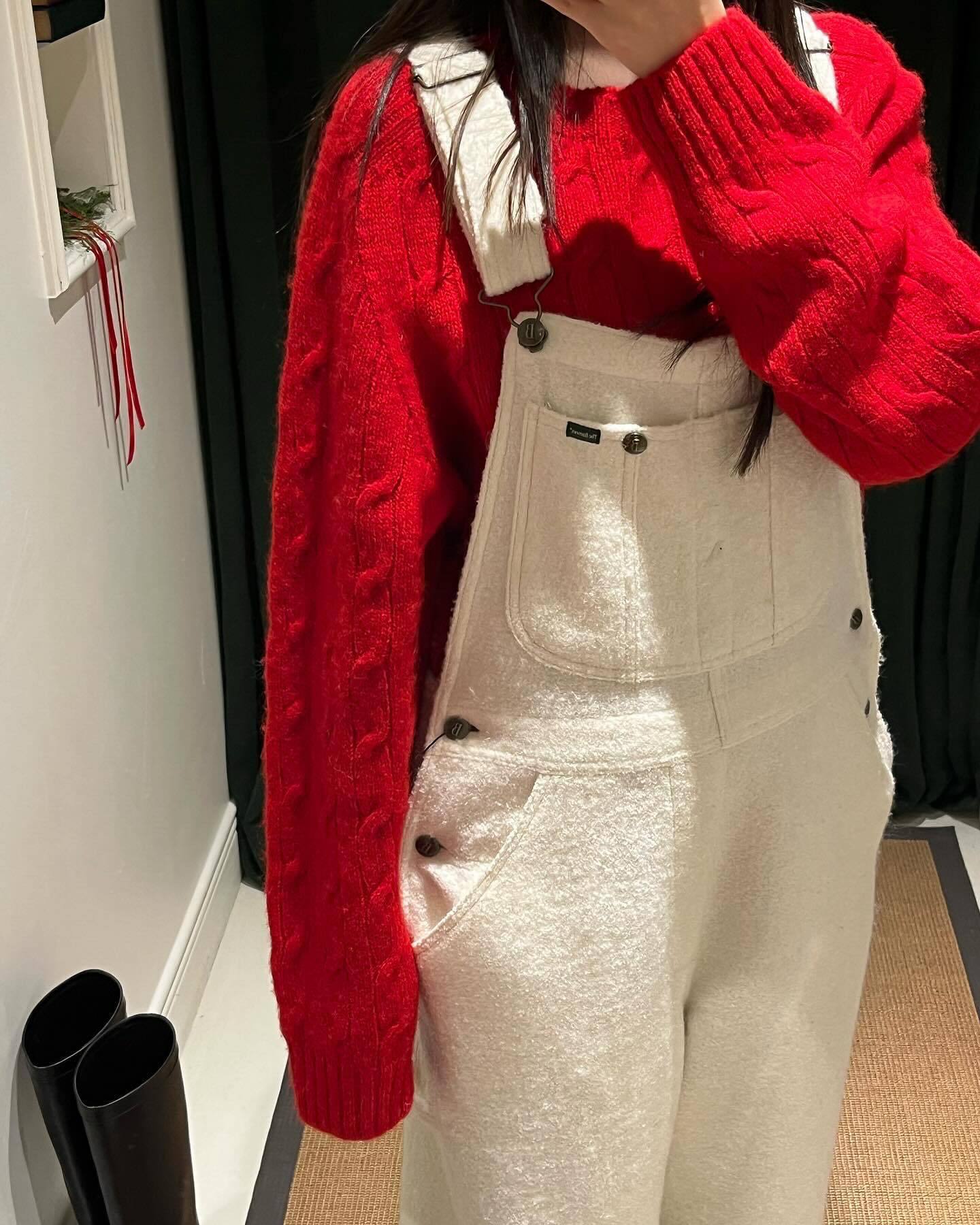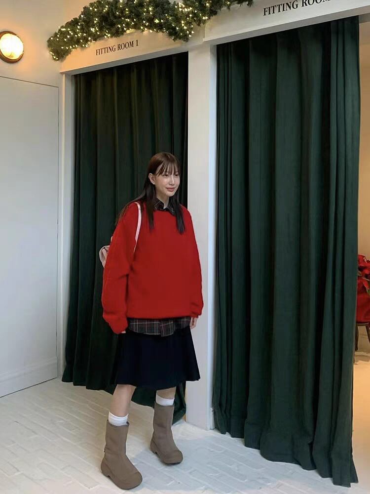 韓国 ファッション The Barnnet ザ バーネット セーター ニットトップス Boucle Pointelle Knit Sweater レッド