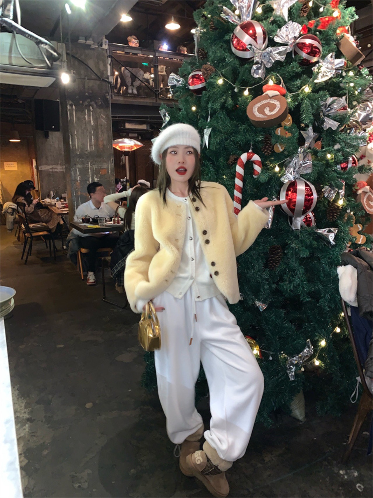 ファーコート ウール100% ノーカラー レディース ブルゾン ジャケット ショートコート コート 秋冬 冬 長袖 暖かい 防寒 防風 アウター ファー エコファー 毛皮コート 厚手 暖かい 上品