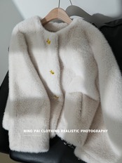 新作 ジャケット レディース ファー ジャケット 暖かい 柔らかい アウター ノーカラー もこもこ ふわふわ 秋 冬 コート ムートンコート ホワイト