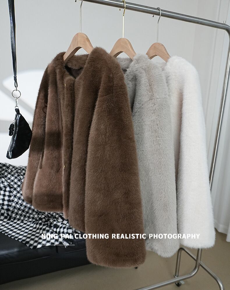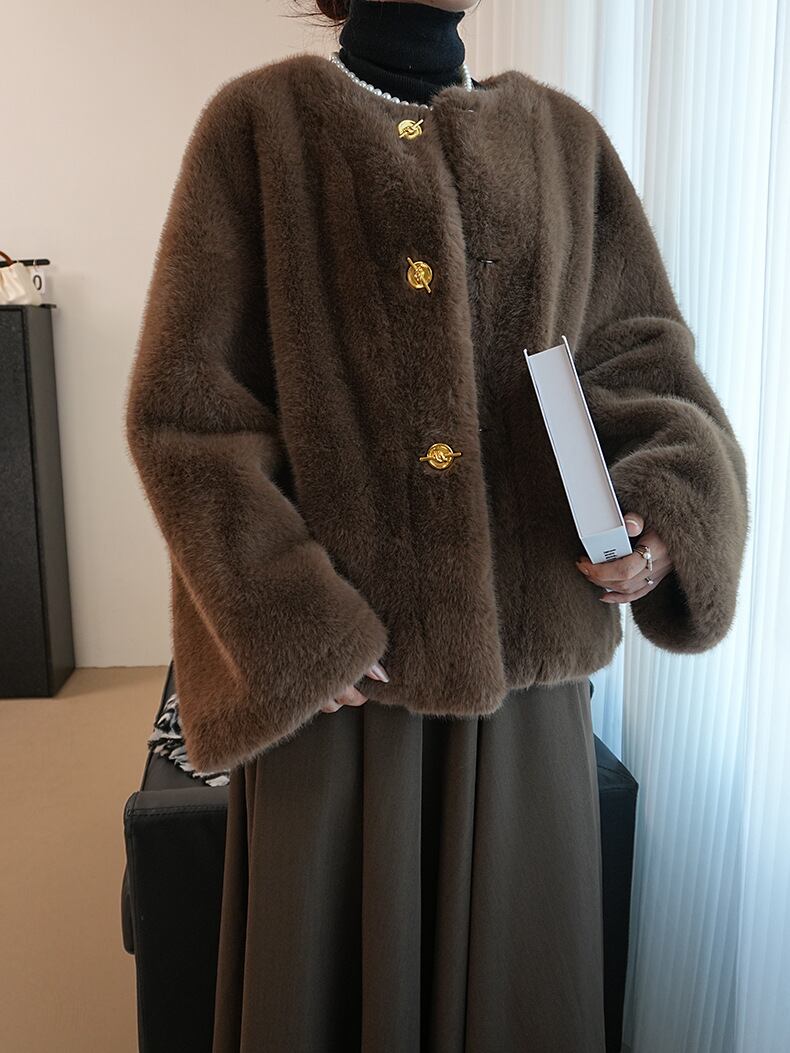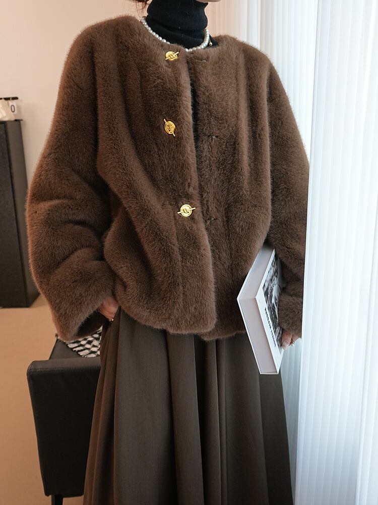 大人気 ジャケット レディース ファー ジャケット 暖かい 柔らかい アウター ノーカラー もこもこ ふわふわ 秋 冬 コート ムートンコート ブラウン