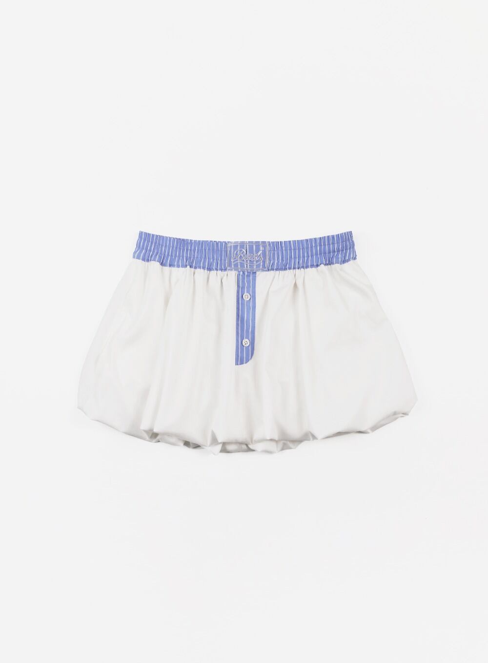 柔らかいコットンとポリブレンドの生地で独自に織って製作されており、快適な着心地のバルーンミニスカート。