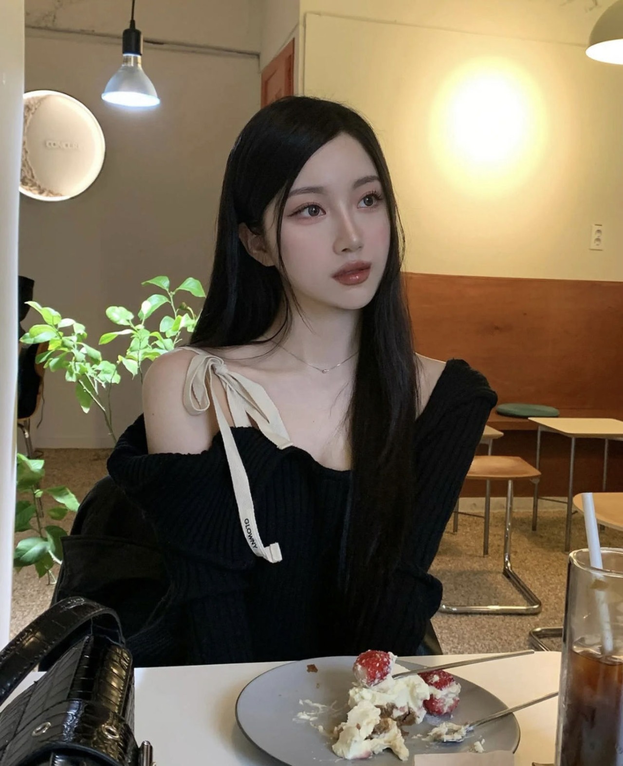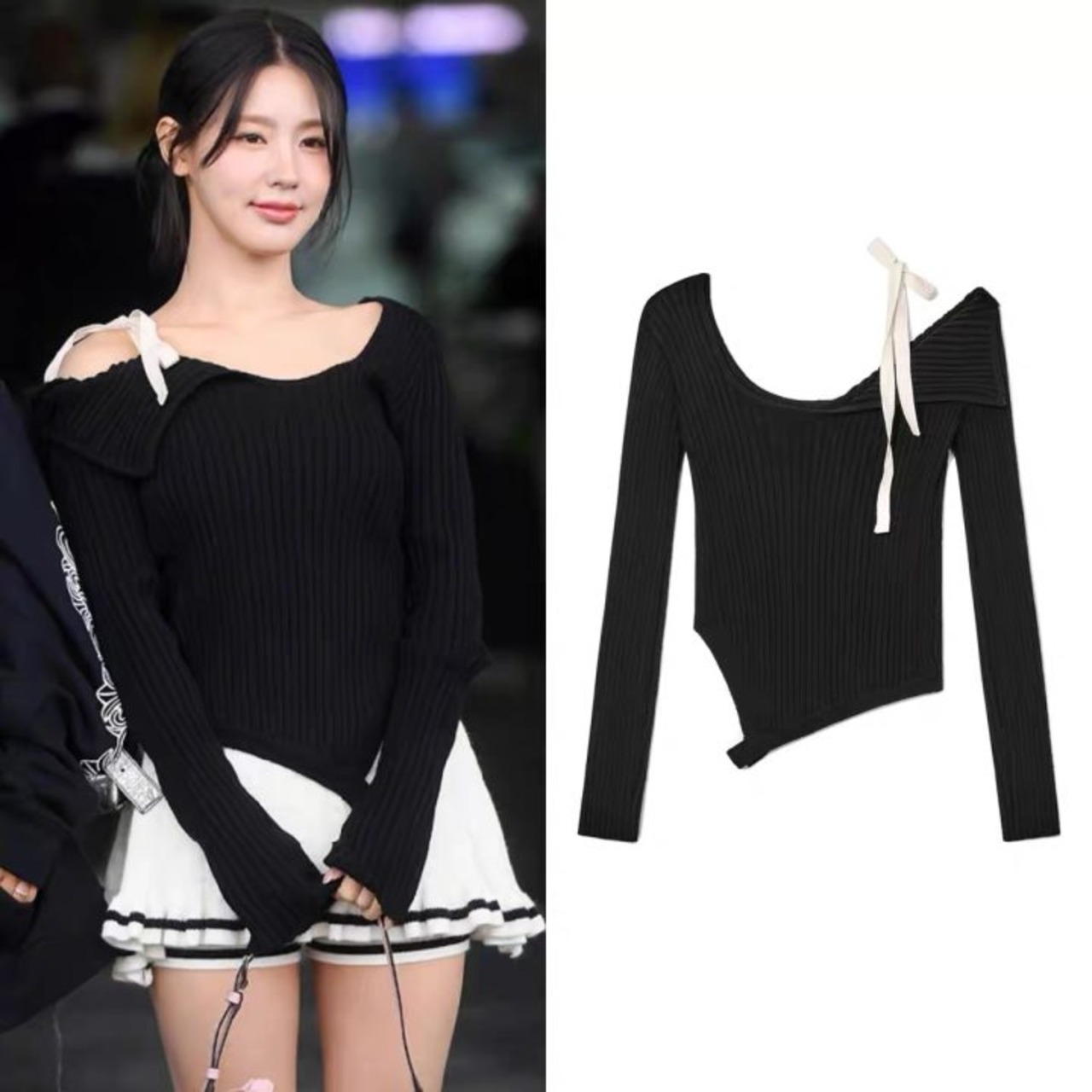 人気 韓国 GLOWNY グロウニー (G)I-DLE ミヨン 着用 アシンメトリーニット 長袖 ISA ASYMMETRICAL KNIT TOP ブラック