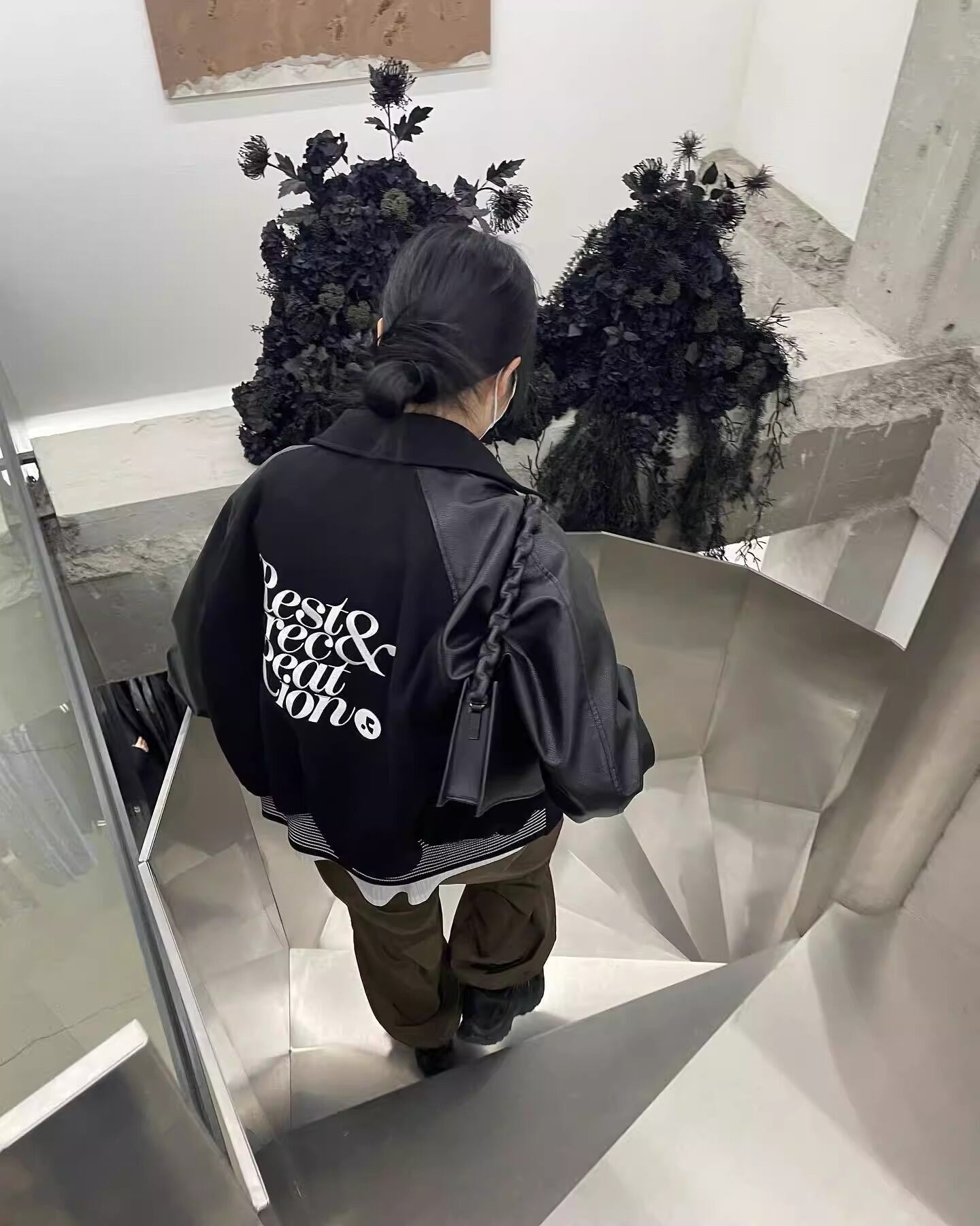 韓国 ファッション Rest & Recreation レストアンドレクリエーション ジャケット 防風 男女兼用 RR LOGO WOOL BOMBER JACKE.T ブラック