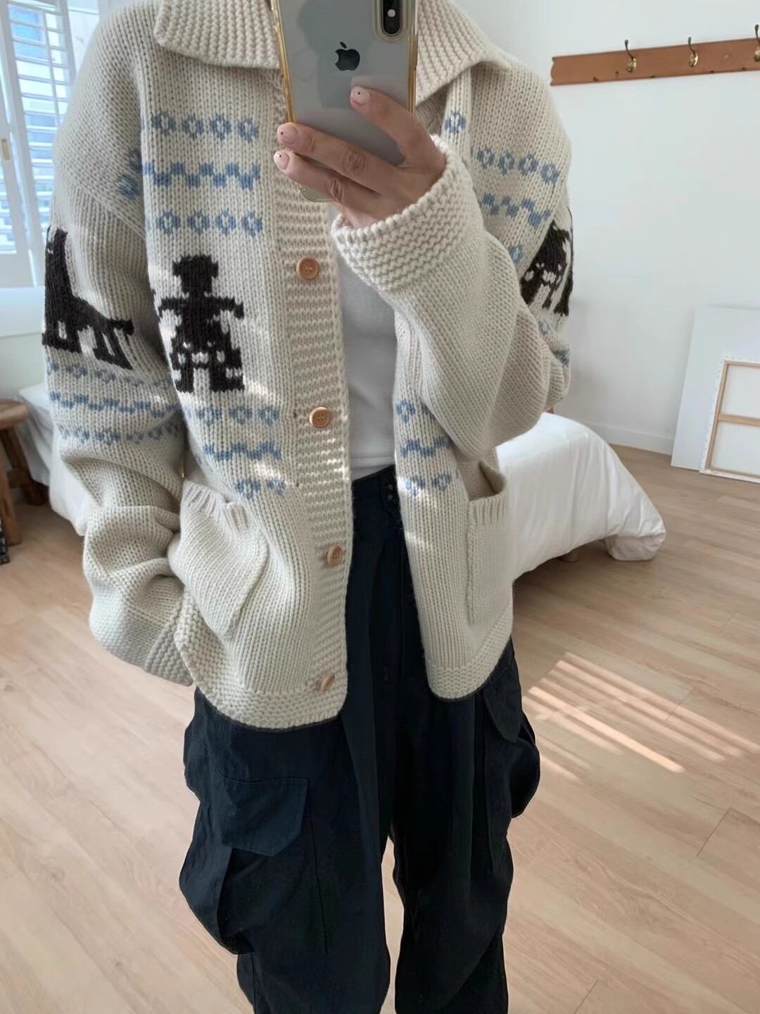大人気 asome デザイン刺繍 レディース ファッション ニット カーディガン セーター ニットジャケット ベージュ