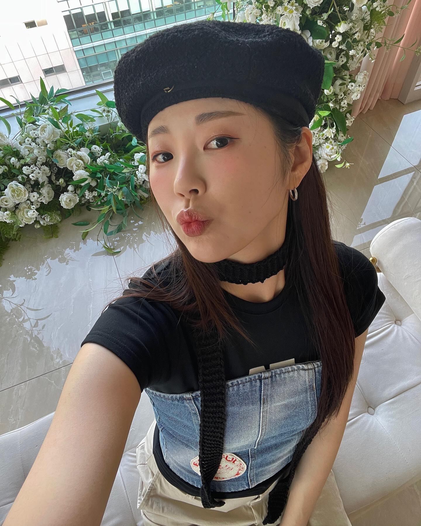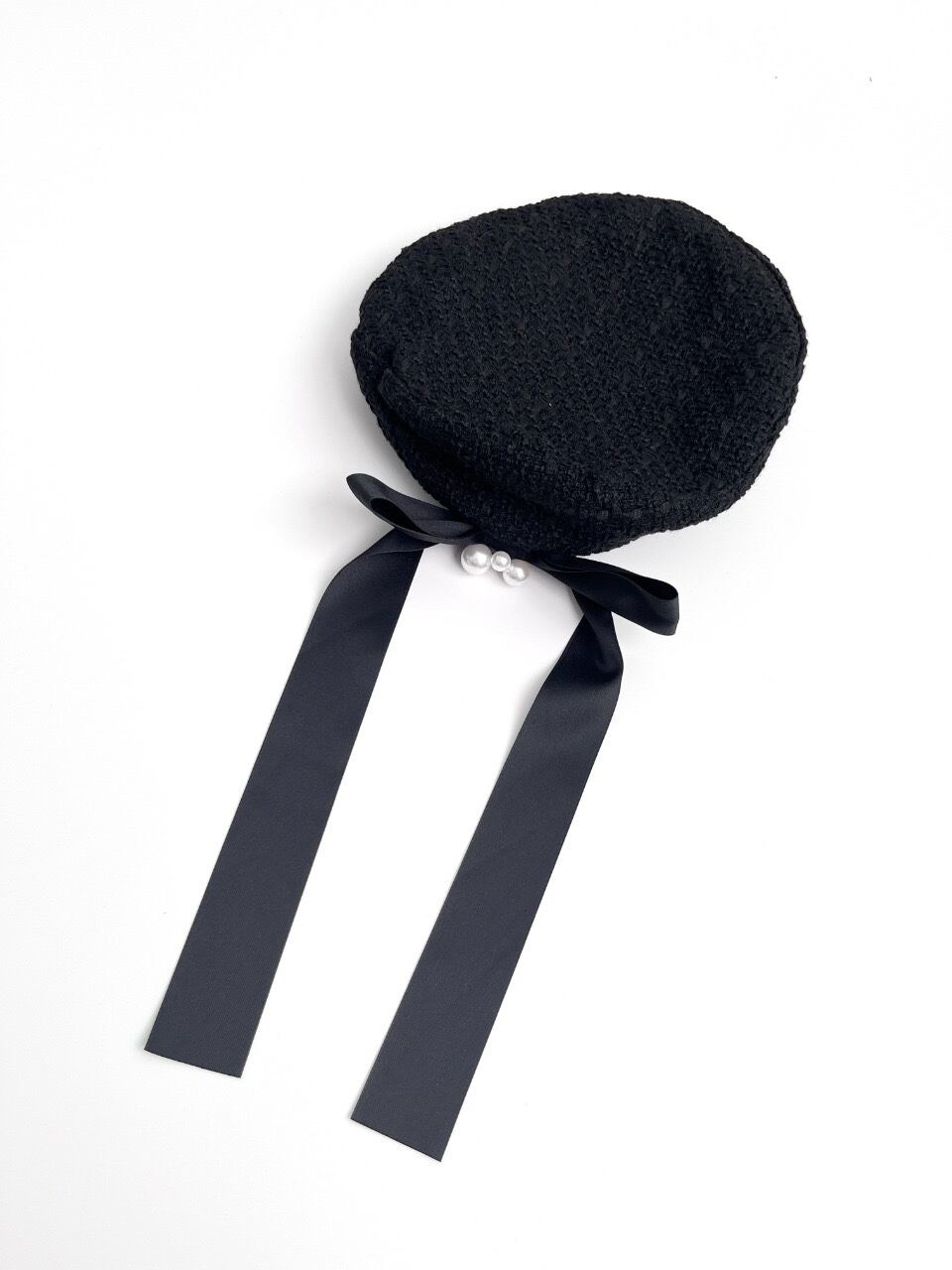 新品 韓国 人気 YOUHEE ユヒ 帽子 レディースファッション ベレー帽 TWEED RIBBON BERET ブラック