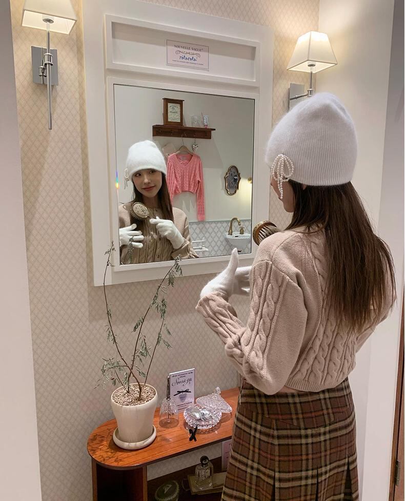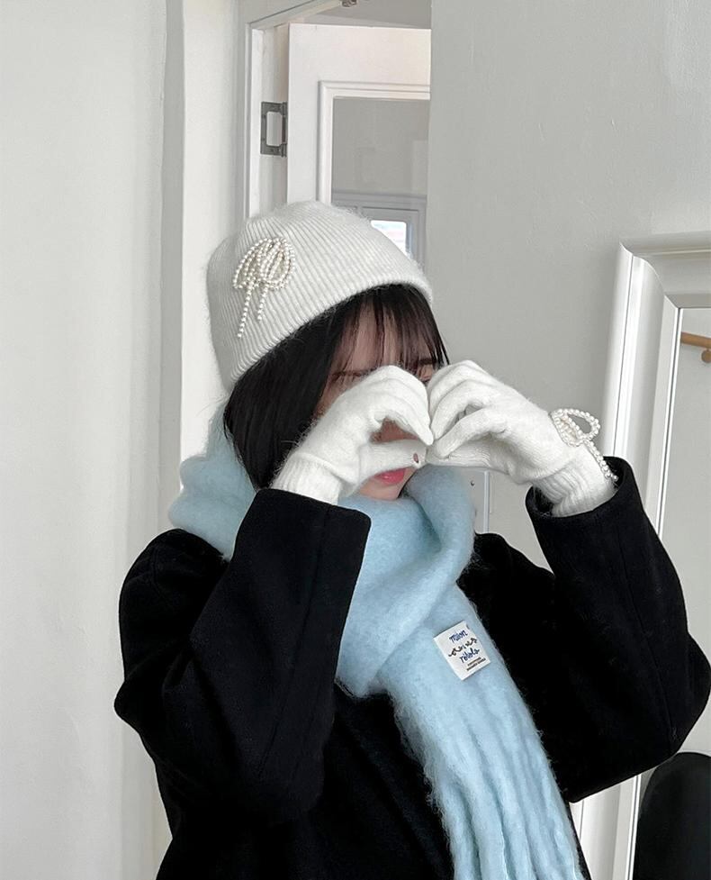 大人気 韓国 rolarola ロラロラ ファッション 帽子 リボン ニット帽 ニットキャップ ビーニー RIBBON ANGORA BEANIE IVORY