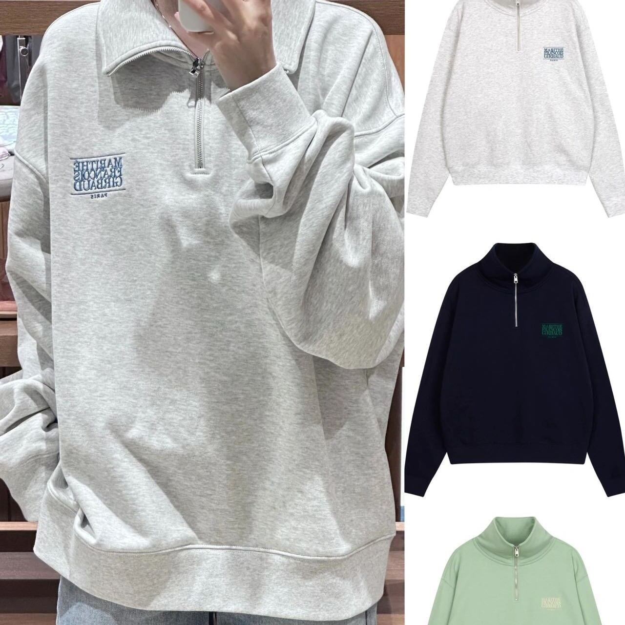 韓国ファッション Marithe + Francois Girbaud マリテフランソワジルボー レディース スウェットトレーナー トップス 男女兼用 CLASSIC LOGO HALF ZIPUP SWEATSHIRT Grey