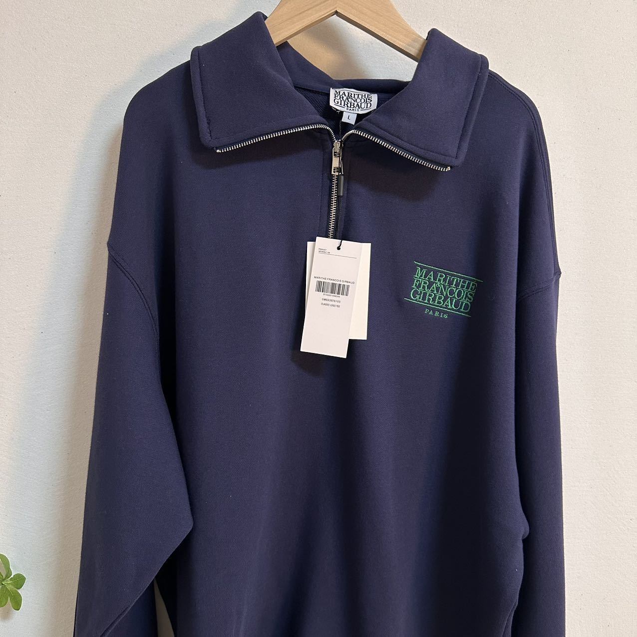 韓国ファッション Marithe + Francois Girbaud マリテフランソワジルボー 男女兼用 スウェットトレーナー トップス CLASSIC LOGO HALF ZIPUP SWEATSHIRT Navy