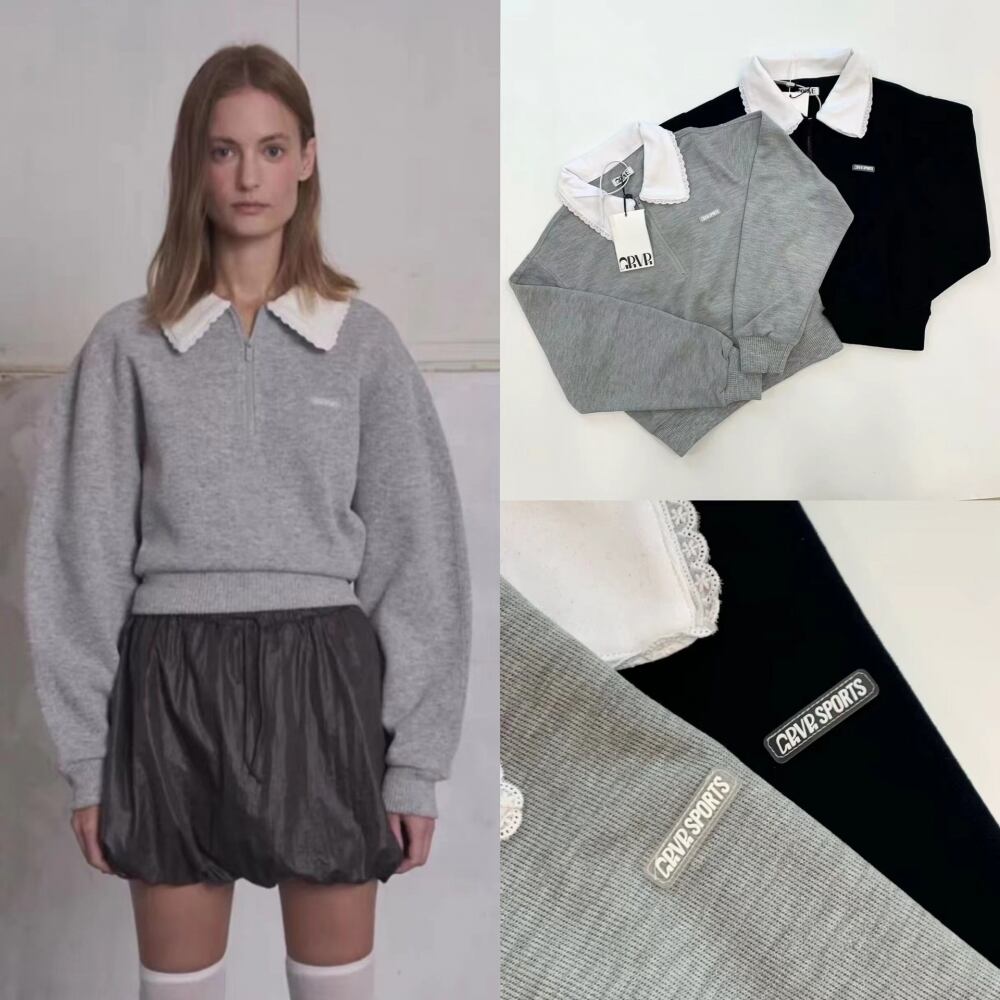 大人気 韓国ファッション グローブ GROVE レース襟 スウェットシャツ トップス SPORTS LACE COLLAR SWEAT SHIRTS グレー